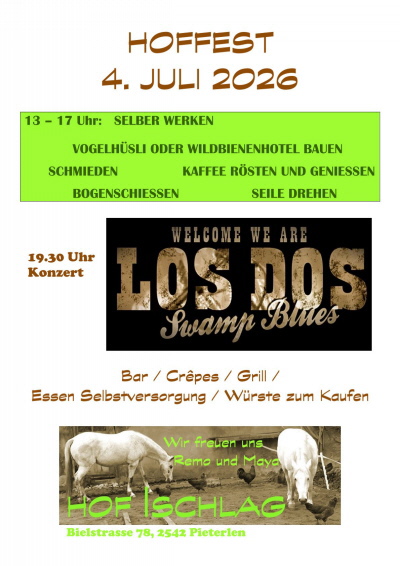| © Copyright Hof Ischlag, Bielstrasse 78, 2542 Pieterlen | Letzte Änderung: 18.01.2026 | Erstellt mit